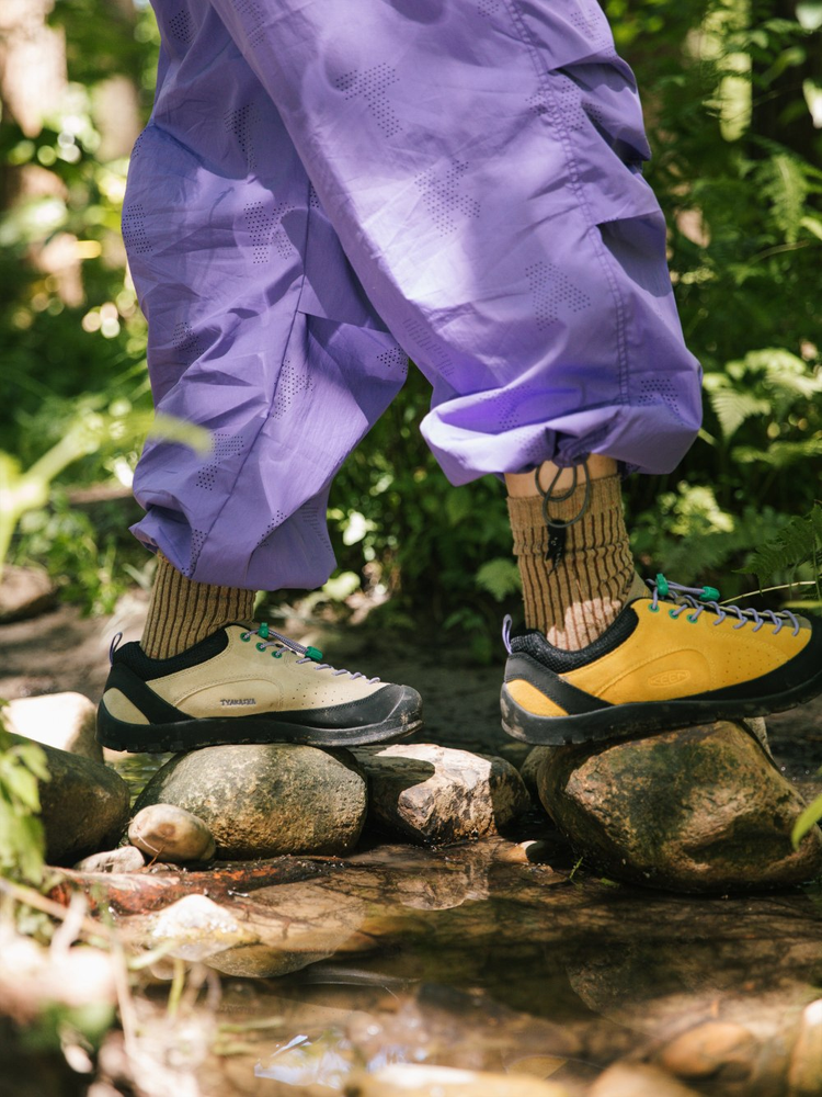 這次聯乘系列以「Joy Knows No Age」為主題,大膽的紫拼黃色傳遞著活力、好奇心和探索的自由,重新演繹了 KEEN 的經典 JASPER ROCKS 和深受小朋友喜愛的 JASPER II,鼓勵各個年齡層的人擁抱每一個激動人心的時刻。