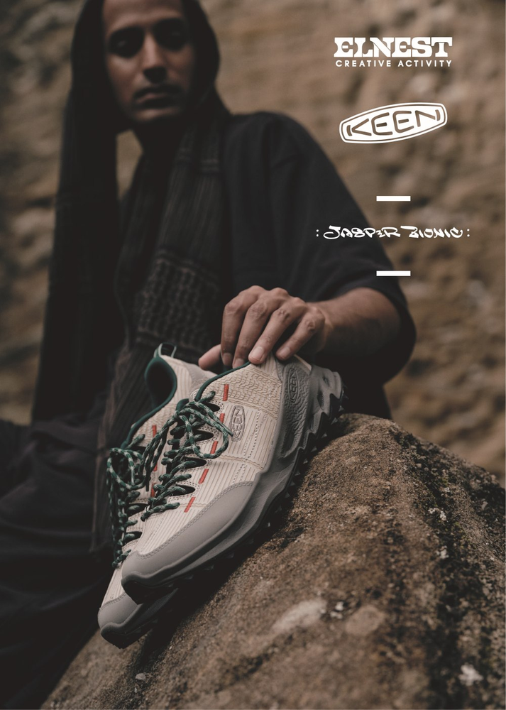 特別值得一提的是,本季推出的 JASPER ZIONIC × ELNEST CREATIVE ACTIVITY 聯名配色,由日本實力派演員井浦新主理的設計品牌攜手 KEEN,以「透過旅行連結大自然與都市」為主題,鞋面靈感取自古時農民的稻草工具,透過雷射加工技術精緻呈現,巧妙融入日本傳統工藝美學。