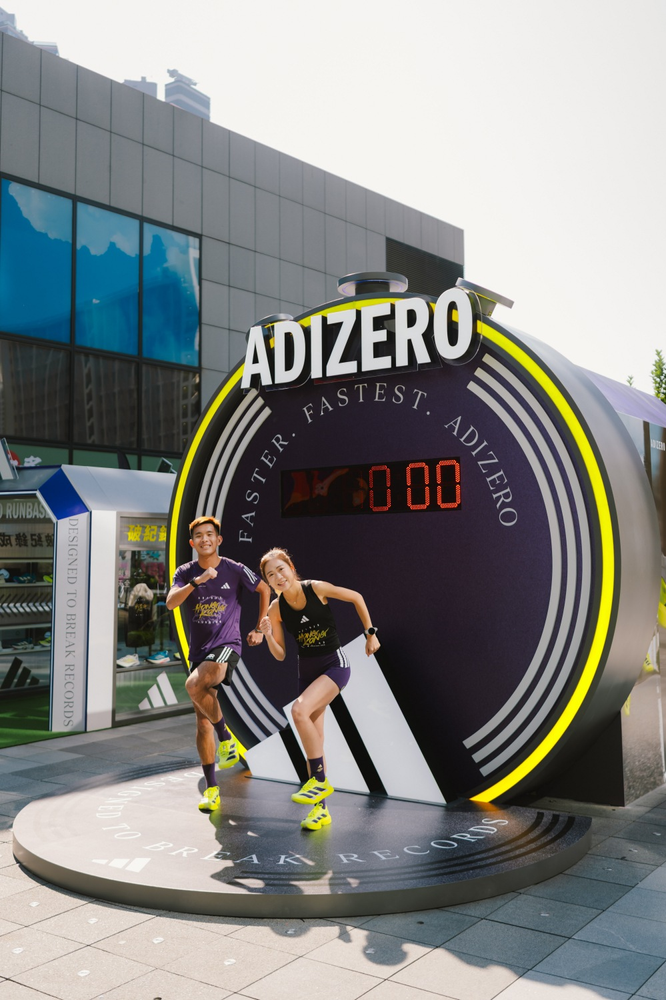 同場展出最新 adidas ADIZERO 系列,包括 ADIZERO ADIOS PRO 4、ADIZERO BOSTON 13,以今季主打 SOLAR YELLOW 配色打造展示裝置,呼應「破紀錄成癮」及「練快練上癮」主題,鼓勵跑手專注每次進步。