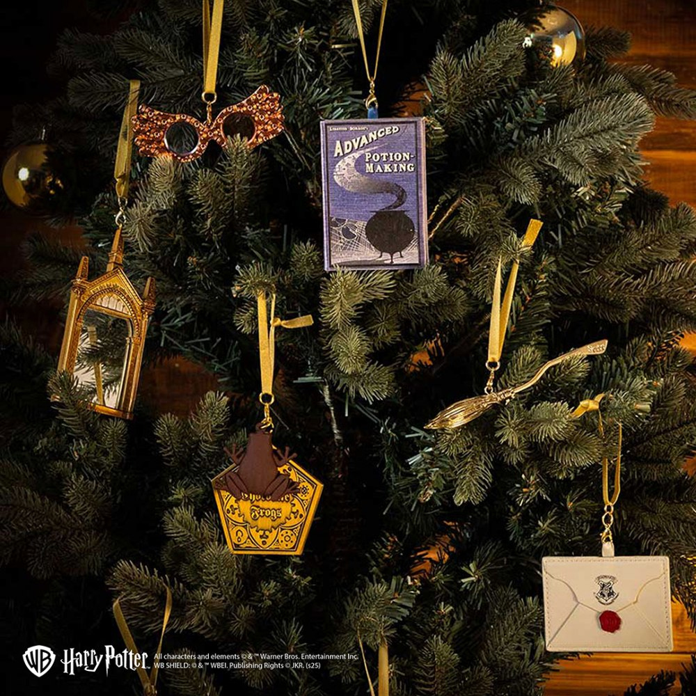 經典Weasley孖兄弟惡作劇商品圖案被巧妙運用在印花方巾與標誌耳環等配件上,展現幽默感與創意;節慶裝飾品如魔藥課本、飛天掃帚以及神秘蠟燭造型掛飾,點綴聖誕樹或家中角落,輕鬆營造魔法節日氣息。哈利波特主題座枱聖誕樹則集結電影經典元素,是寒冬中極具收藏價值的限定品。