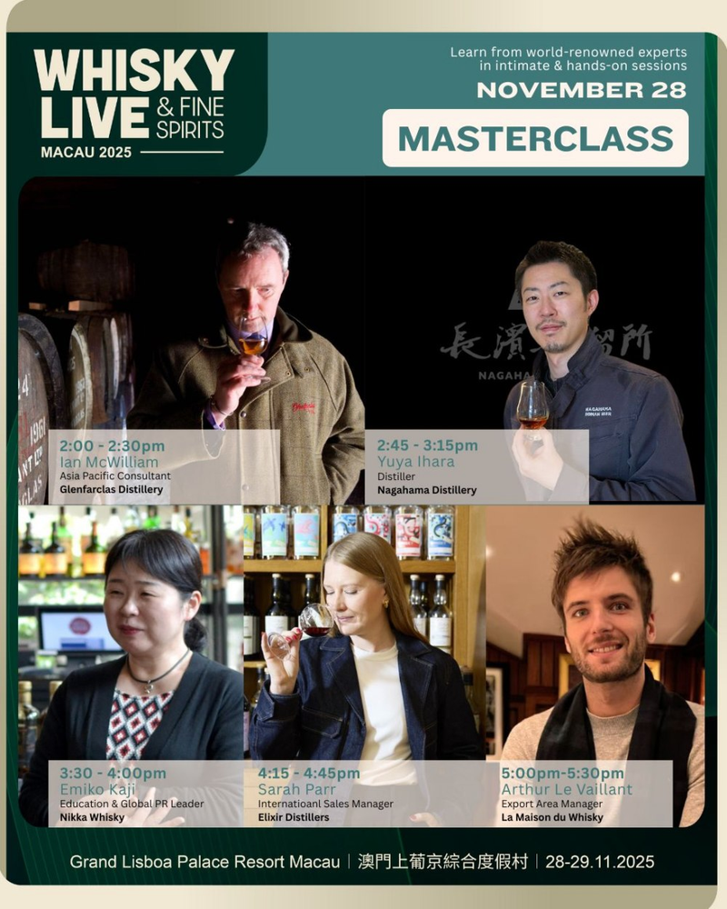 11月底到澳門,除了到處吃喝玩樂,威士忌迷必去年度國際威士忌盛會Whisky Live & Fine Spirits Macau(11月28至29日舉行),活動由澳娛綜合攜手《威士忌雜誌》主辦,集合超過80個國際品牌、500款威士忌與烈酒,還有大師班、現場音樂演出及美酒美食搭配晚宴。最近官方正式公佈一系列的大師班詳情!
